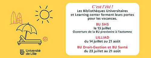 Les Bibliothèques Universitaires et Learning center ferment leurs portes pour les vacances.